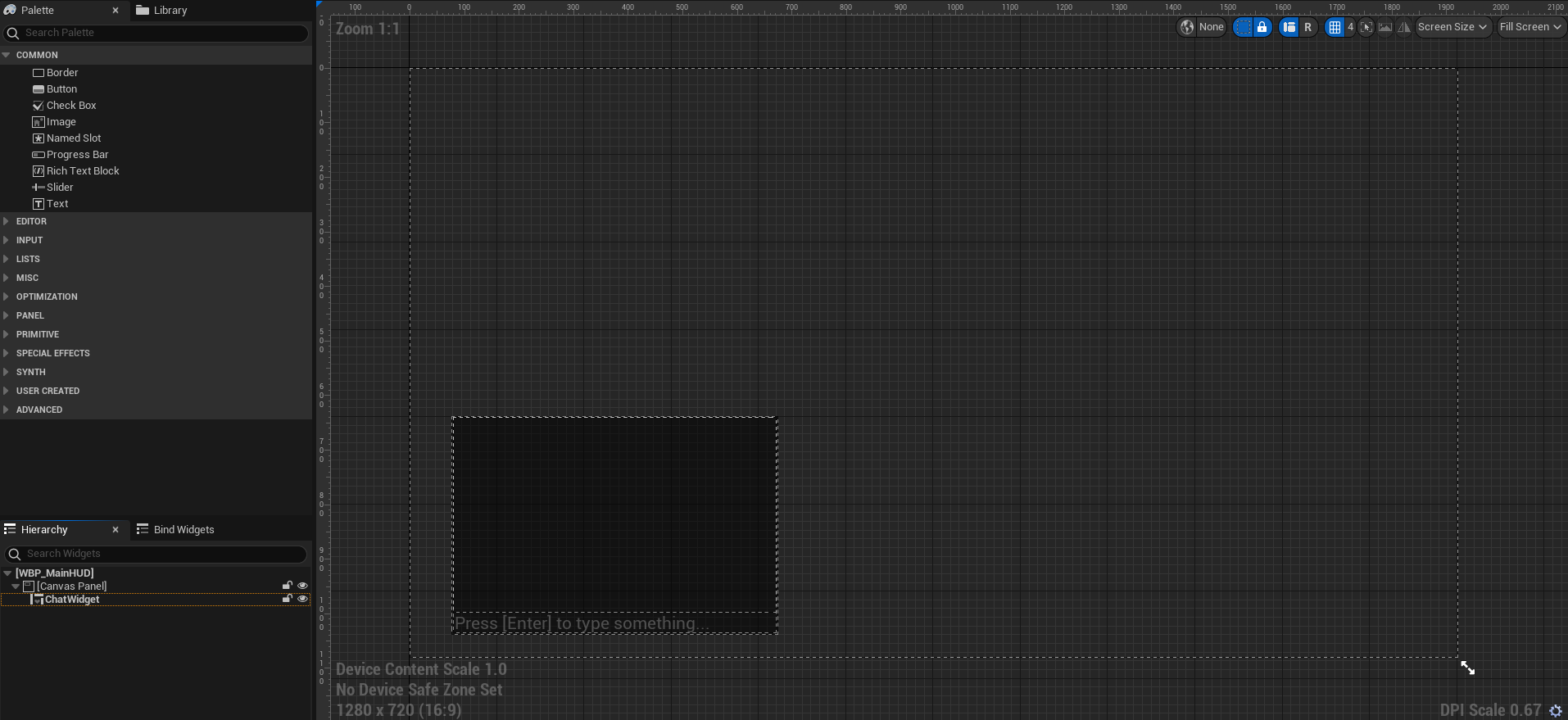 When a player enters the game, a widget from the UMCMainWidget class is created and added to the screen. This class contains the UMCChatWidget.